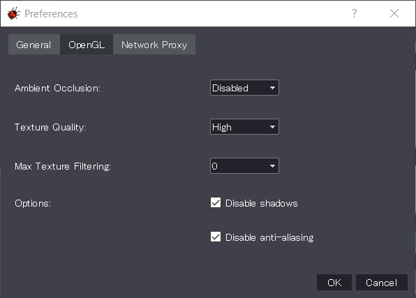 - Open the OpenGL tab